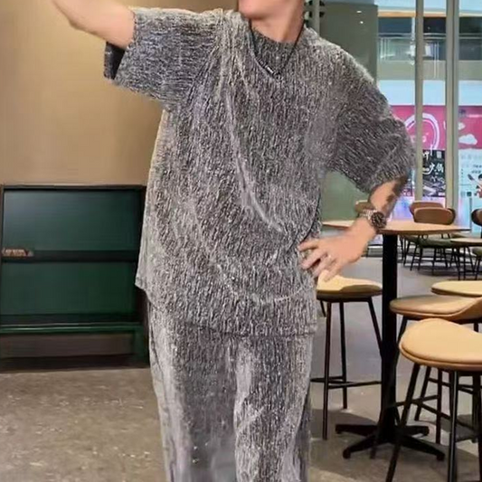 Men’s Short Sleeve Top & Wide Leg Pants 2-Piece Set