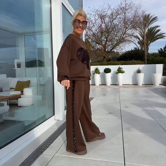 ✨ Women’s Sequin Heart Top & Pants 2-Piece Set – Premium Quality, Modern Comfort ✨