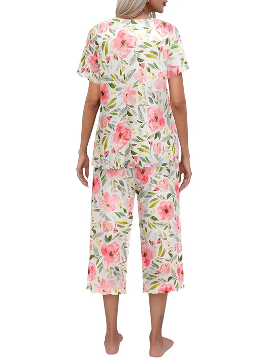 HOT SALE WOMEN'S PRINTED SHORT SLEEVE TOP WITH CAPRI PANTS LOUNGE & SLEEPWEAR SET