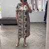 Package includes: 1 * Women's dress with geometric print and round neckline.