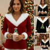 PLUSH FAUX FUR TRIM: Enjoy a touch of elegance and warmth with the soft faux fur collar and cuffs. This stylish detail elevates the classic long-sleeve tee, providing a cozy and festive look for the season.
