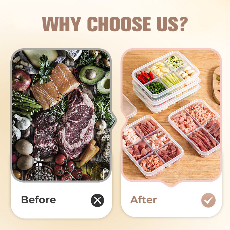 TRANSPARENT DIVISIONS: Keep ingredients fresh and organized thanks to the divided, transparent sections. Store different types of food in a single container without mixing. Save space in the refrigerator or pantry by stacking or placing them sideways.