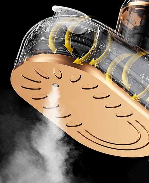 Rapid high-volume steam quickly removes wrinkles and shapes fabrics precisely for a professional finish.