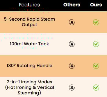 Handheld Portable Steam Iron Feature Comparison