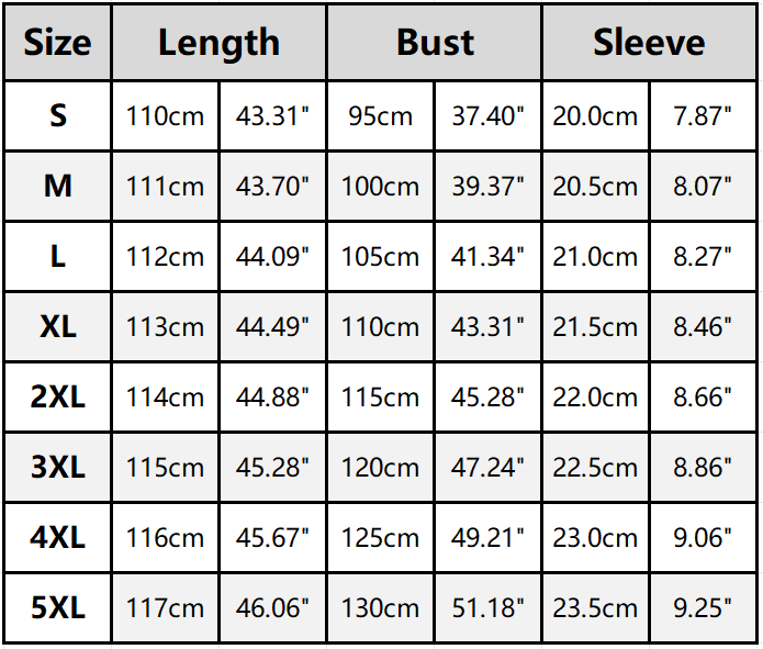 Size: S, M, L, XL, 2XL, 3XL, 4XL, 5XL