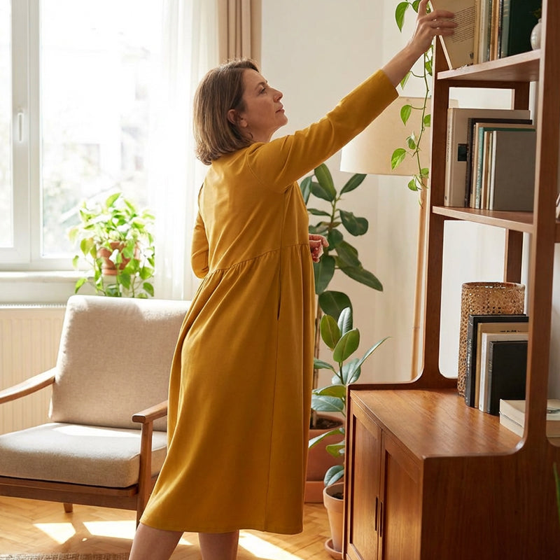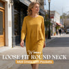 📢 Limited Time 50% OFF👗Women's Loose Fit Round Neck Midi Dress with Pockets-Effortless Comfort & Everyday Elegance✨
